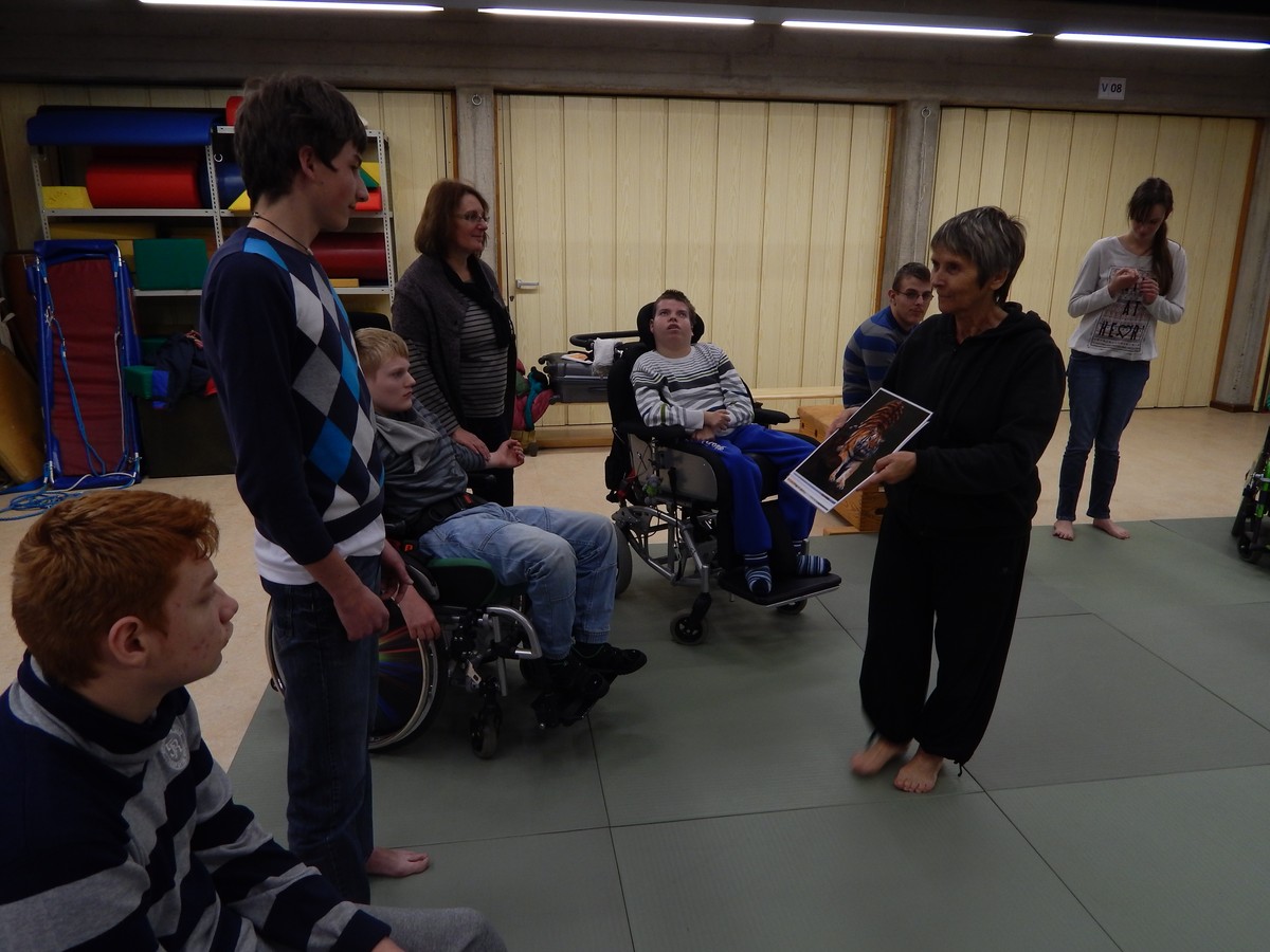 Am Freitag den 21.11.2014 kam Frau Gertrud Schröder aus Freiburg zu uns in die Schule und übte mit uns A.K.T. /Qigong Dancing. Wir haben alle schon einmal vorher die Übungen bei Frau Riemer kennen gelernt und wussten, dass es dabei um die vier Tiere: Bär, Kranich, Tiger und Schlange geht. Wir verbanden zuerst Himmel und Erde miteinander, waren standfest wie ein Bär und haben eine ganze Bären-Übungsfolge mitgemacht. Danach bewegten wir unsere Arme federleicht wie ein Kranich und tanzten miteinander. Anschließend wurde laut gebrüllt wie ein Tiger und wir zeigten unsere Tigerkrallen. Die Kraft des Tigers - wir zeigten sie und wehrten uns. Der Höhepunkt war das letzte Tier. Wir lernten ein ganz neues Schlangentanzlied kennen und überlegten uns, was wir alles miteinander mitmachen konnten. Wir bildeten einen Kreis, faßten uns an den Händen und bewegten uns nach der Musik wie eine Schlange. Alle haben mitgemacht und es war ein ganz toller Abschluss. Wir hoffen, dass Gertrud Schröder wiederkommt, um mit uns zu üben. Danke für die tolle Stunde!