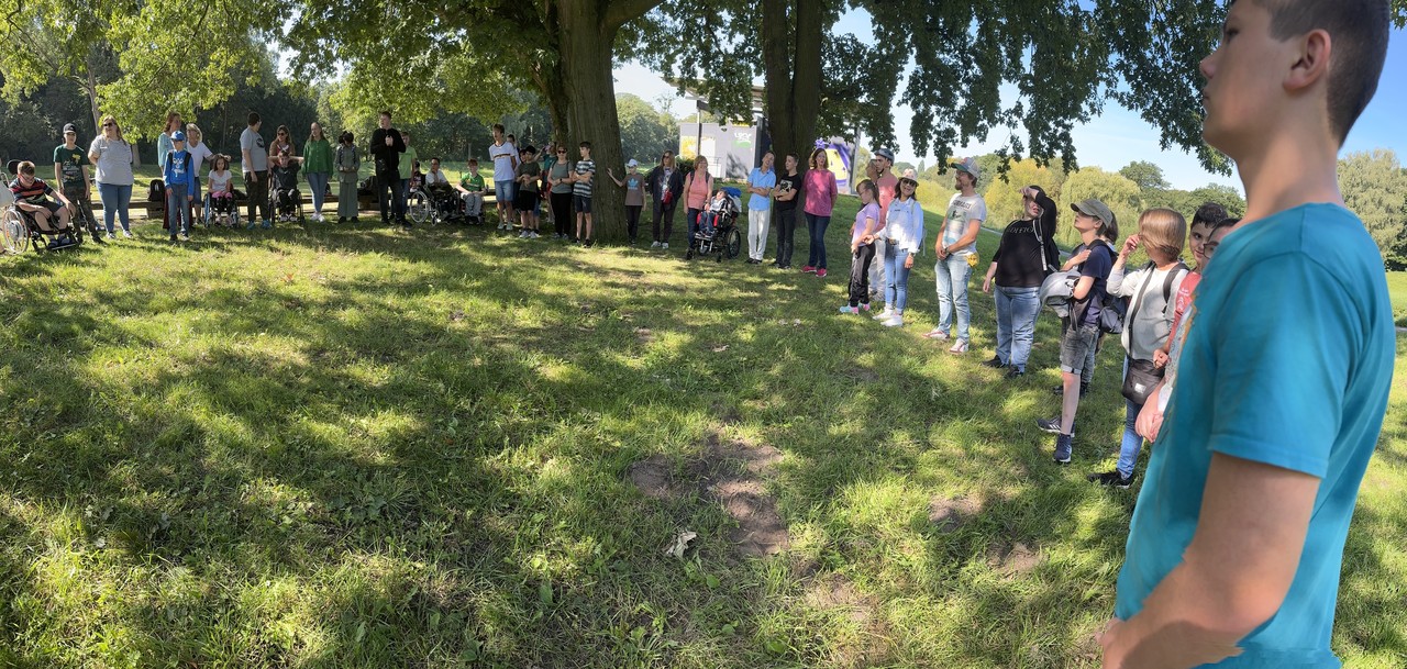 Die neu zusammengesetzte MIT C-Stufe hat sich am 27.08.2024 zu einem Kennenlerntag im Bad Oeynhausener Siel Park zusammengefunden. Nach Ankunft und einer Frühstückspause gab es bei bestem Wetter mehrere Kennlernspiele zum Ausprobieren: Schüler*innen und Lehrkräfte haben unter einem Schwungtuch die Plätze gewechselt und Wikinger-Schach gespielt. Auch Stopp-Tanzen wurde für musikbegeisterte Schülerinnen und Schüler angeboten, wobei beliebte Sportarten wie Fußball auch nicht zu kurz kamen. In gut zwei Stunden hatten die Schülerinnen und Schüler die Möglichkeit, sich neu oder besser kennenzulernen, fern ab vom Schulalltag und unabhängig ihrer Klassenzuweisung.